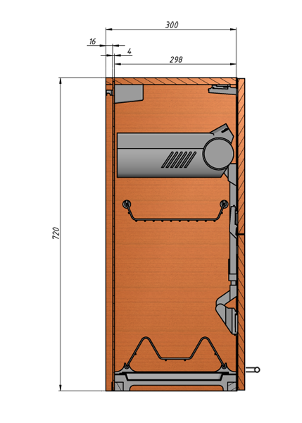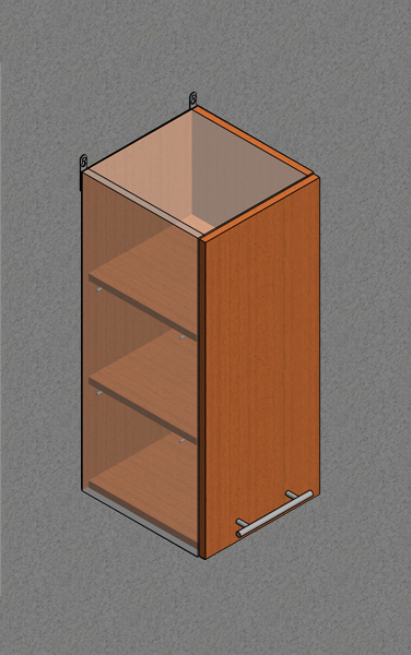 Навесные шкафы (верхние корпуса) имеют глубину 300 мм, что вызвано не только необходимостью их эргономической функциональности, но и тем, что большинство комплектующих для них изготовлены с учетом этого значения (к примеру, посудосушители). В большей глубине необходимости нет, к тому же они будут не совсем удобны в использовании.