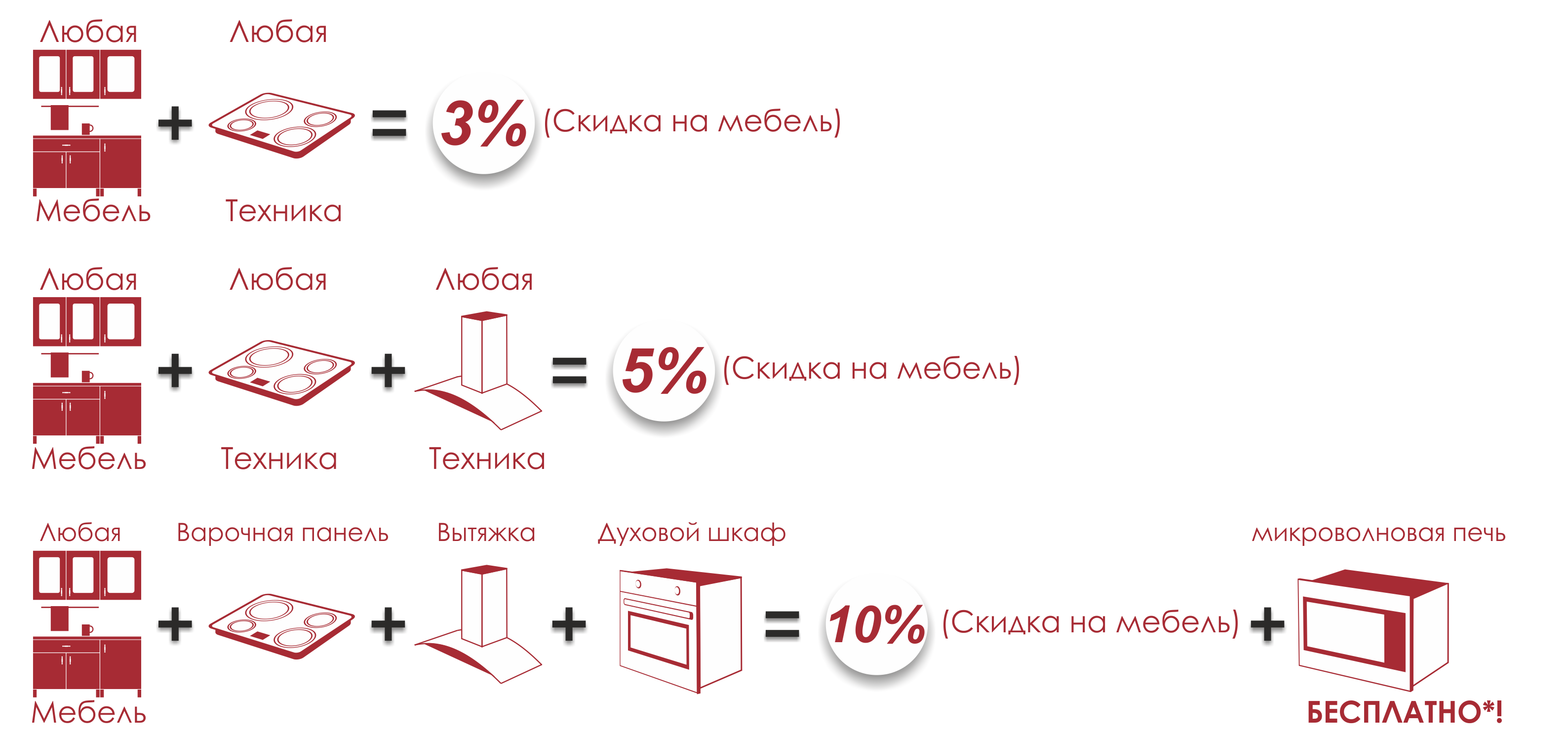 Акция действует с 10.02.2016г. по 31.03.2016г. Компания оставляет за собой право изменять цены, сроки и условия акции без предварительного уведомления. Скидки предоставляются только при условии одновременного заказа кухни и техники. Скидка в размере десять процентов предоставляется при условии выполнения дополнительных услуг по сборке и установке кухни и установки техники сотрудниками мебельной компании «Антарес». Скидки не распространяются на товары не участвующие в акции и товары участвующие в других акциях. Правила проведения акции, цены и условия уточняйте в салонах «антарес» или на сайте antarescompany.ru. Не является публичной офертой.