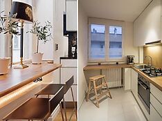 Благодаря такому подходу, можно без труда увеличить площадь помещения, что позволит установить крупногабаритную технику на компактной кухне.