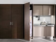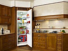 Техника находится за дополнительными стенками, происходит звукопоглощение. Это еще одно преимущество встроенного холодильника – ведь так приятно отдохнуть на кухне в тишине, не слыша гул работающего прибора.