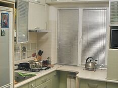 Компактные удобные шкафчики можно разместить как над окном, если позволяет свободное пространство, так и по бокам. Если угол большой – это идеальное место для установки подвесного шкафчика или полок.