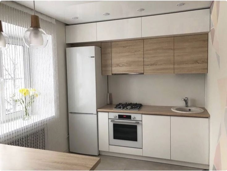 На кухнях с высокими потолками можно установить подъемные дверцы. Это современное, технологичное, необычное и красивое решение. Кухня с такой системой открывания створок всегда смотрится оригинально. Система удобна и безопасна, идеально подходит для тесного пространства.
