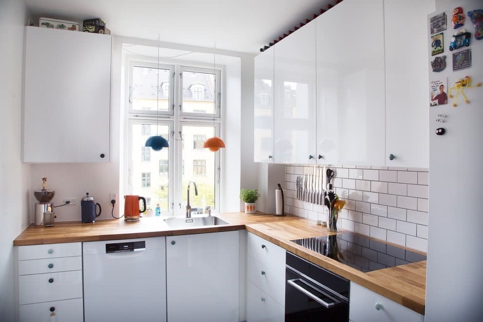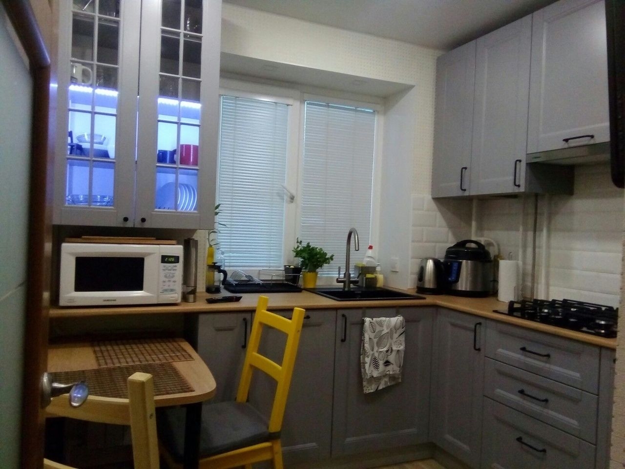 Это эффективное и эффектное решение для маленьких кухонь. А кто сказал, что «второй этаж» должен размещаться именно над гарнитуром? Он вполне может быть и автономным. И для этой цели как нельзя лучше подходит незанятое полезное пространство над дверью, аркой или окном. Задействование непопулярных поверхностей – далеко нередкий дизайнерский ход.