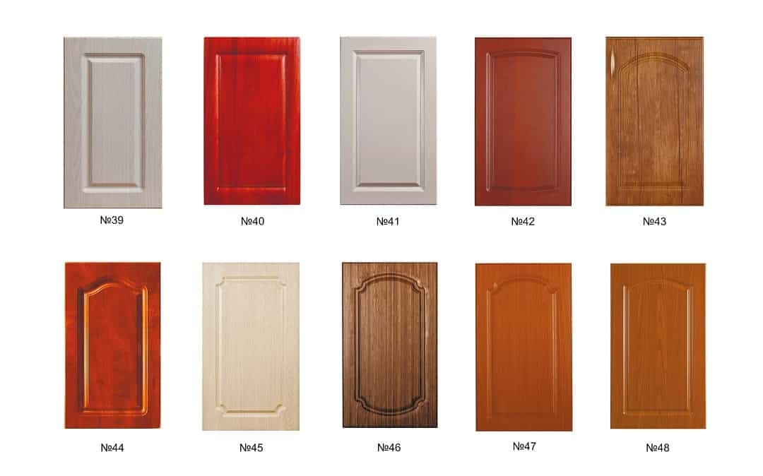Фасад может быть гладким либо фрезерованным, в отдельных случаях украшенным нанесением патины. За гладкой поверхностью легче ухаживать, в то время как в углублениях фрезерованного рисунка может скапливаться жир и загрязнения, лучший способ удаления которых применение мягкой щётки и нейтрального моющего средства.