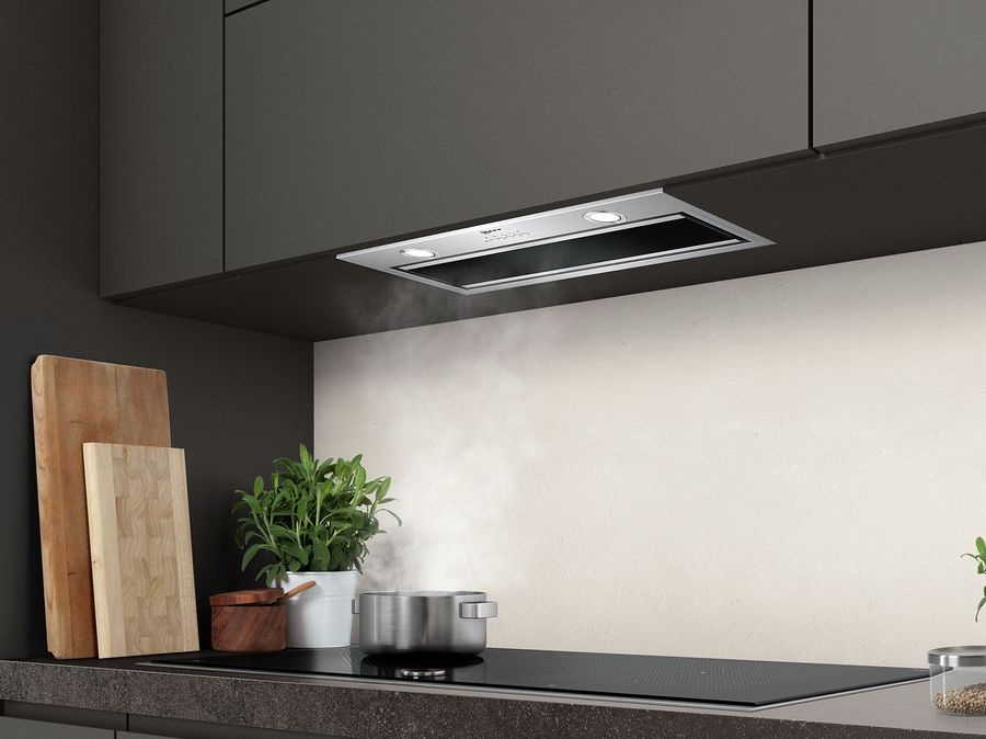 К достоинствам вытяжек телескопического типа относится их компактность — в неработающем состоянии эти приборы практически не видны. Обычно их крепят к нижней части навесного шкафа над плитой. При включении в работу плоская панель вытяжки выдвигается из компактного корпуса.