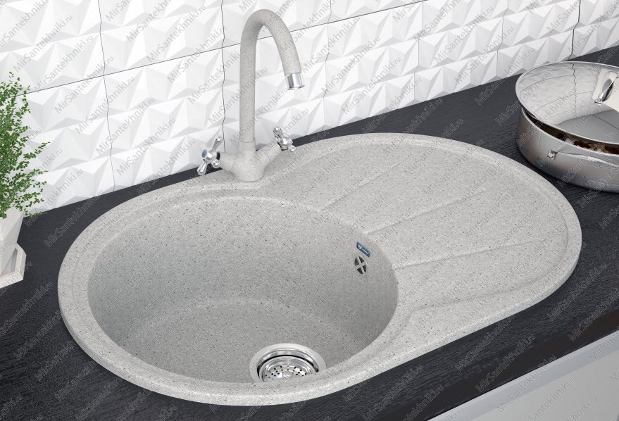 Искусственным камнем называют полимерные композиты (обычно акриловые смолы), смешанные с натуральной каменной крошкой и красителями. Главное преимущество композитных моек для кухни перед изделиями из нержавейки — разнообразие оттенков и фактурных рисунков, которые можно придать этому материалу. Композиты довольно устойчивы к изменениям температуры — они сохраняют свои основные свойства в диапазоне температур от -30°С до +200°С. Мойки из искусственного камня не боятся воздействия агрессивных веществ, применяемых в быту.