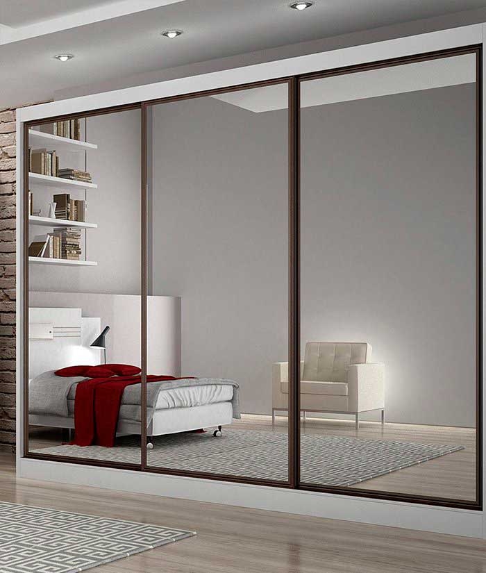 К числу последних трендов в оформлении шкафов – купе относятся зеркальные поверхности дверей. Такое решение имеет как декоративное, так и прикладное значение. Во-первых, большие зеркальные шкафы-купе расширяют пространство помещения и делают его светлее. Во-вторых, при этом отпадает необходимость установки зеркала — его роль играет фасад шкафа, перед которым можно делать макияж, примерять одежду и выполнять физические упражнения. Выбирая шкаф с зеркальным фасадом нужно подумать о том, как его правильно ориентировать. В случае если напротив зеркала располагается зона работы или отдыха — письменный стол, диван и т.п., постоянное наблюдение собственного отражения может отвлекать или даже раздражать.