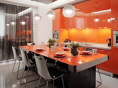 Задумываясь о том, в каком стиле отделать помещение для глянцевой кухни, не стоит забывать об её особенностях: