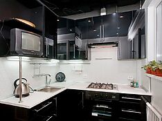 Даже в компактное помещение можно удачно вписать черный кухонный гарнитур. Придерживайтесь следующих советов: