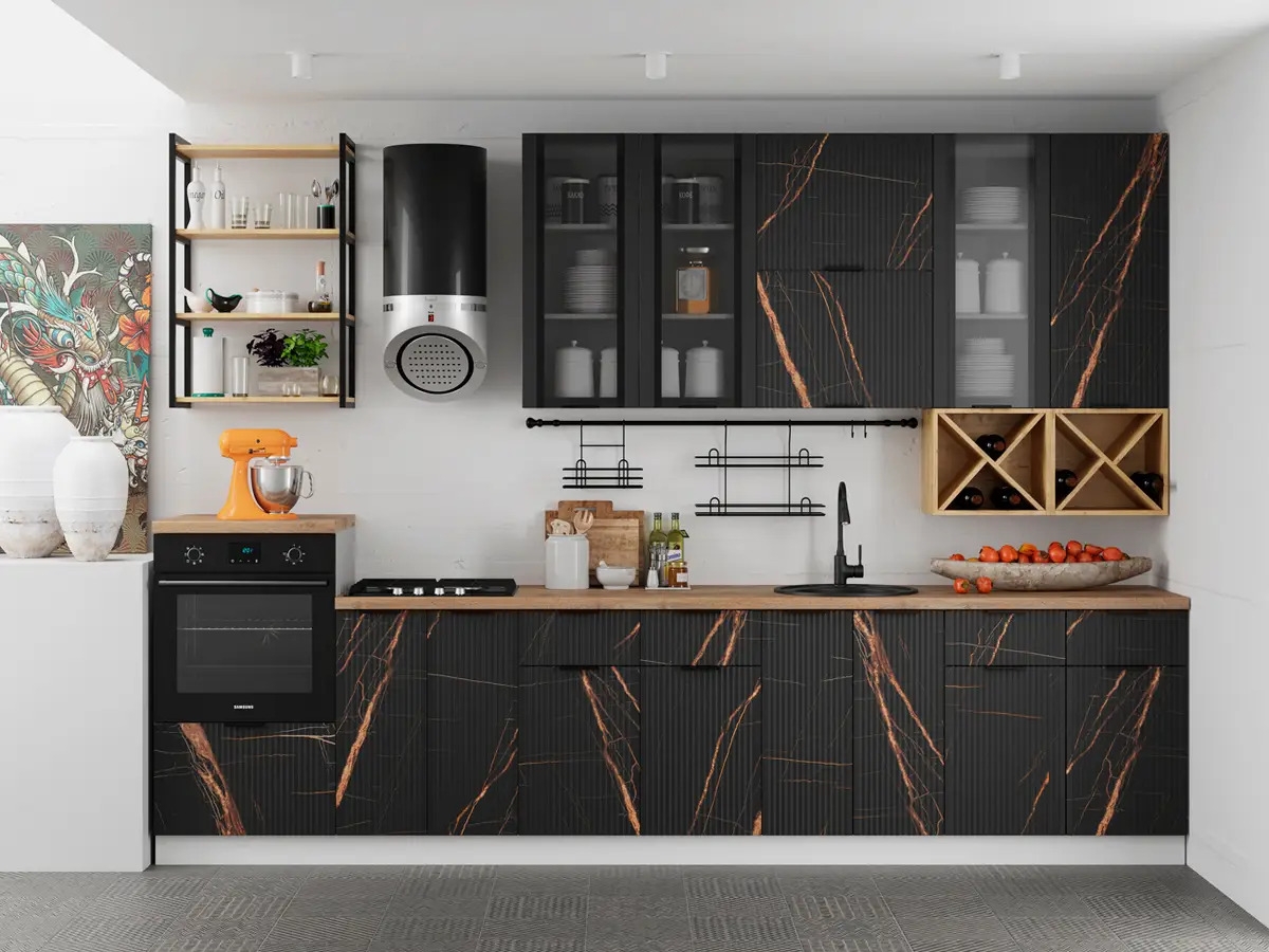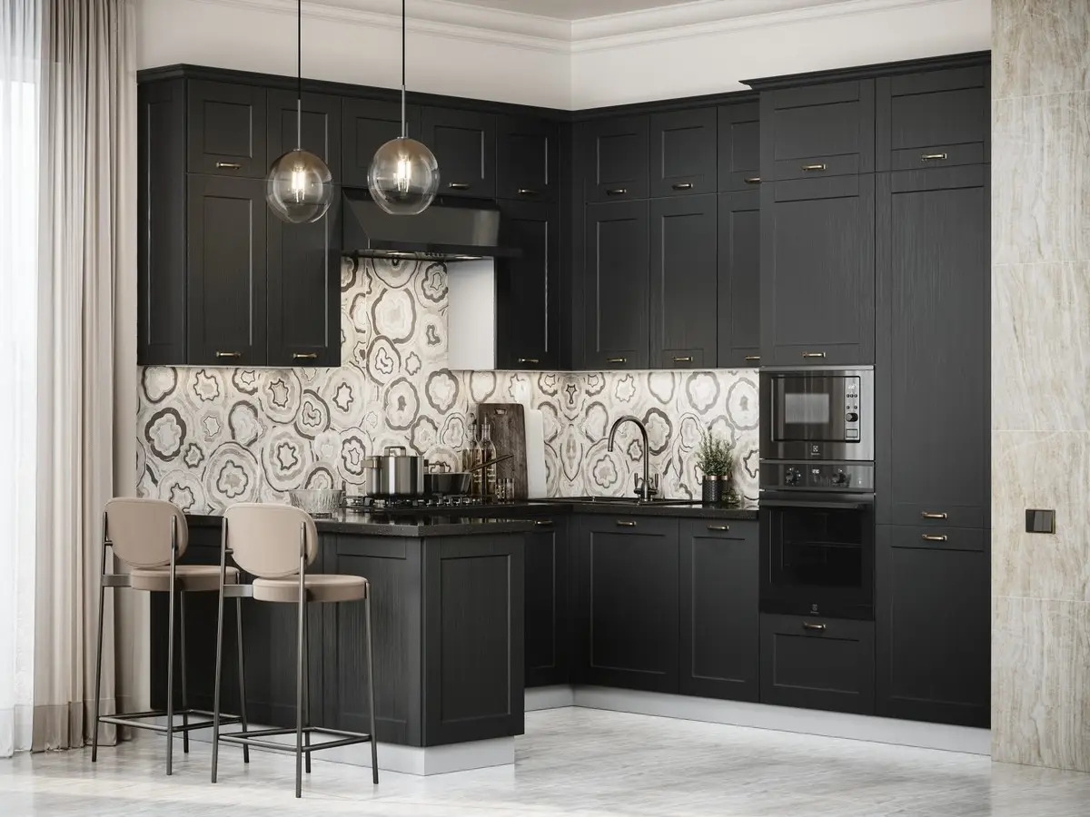 Темный оттенки в интерьере – априори универсальный вариант. Черным цветом можно легко обыграть любой стиль: от классики до модерна, от лофта до техно. Достоинства черного цвета – это способность связывать воедино всю гамму, делать оттенки насыщенными и глубокими, подчеркивать стильность и четкость кухонного гарнитура.
