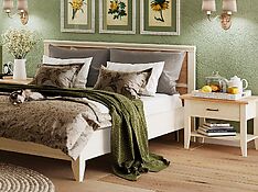 Для кантри-спальни лучше всего выбирать кровати и диваны с каркасом и элементами из натурального дерева. Очень важно подчеркнуть текстуру. В интерьере хорошо смотрится необработанное, грубое дерево. Из него можно сделать и прикроватную мебель: тумбочки, полки, подставки под растения.