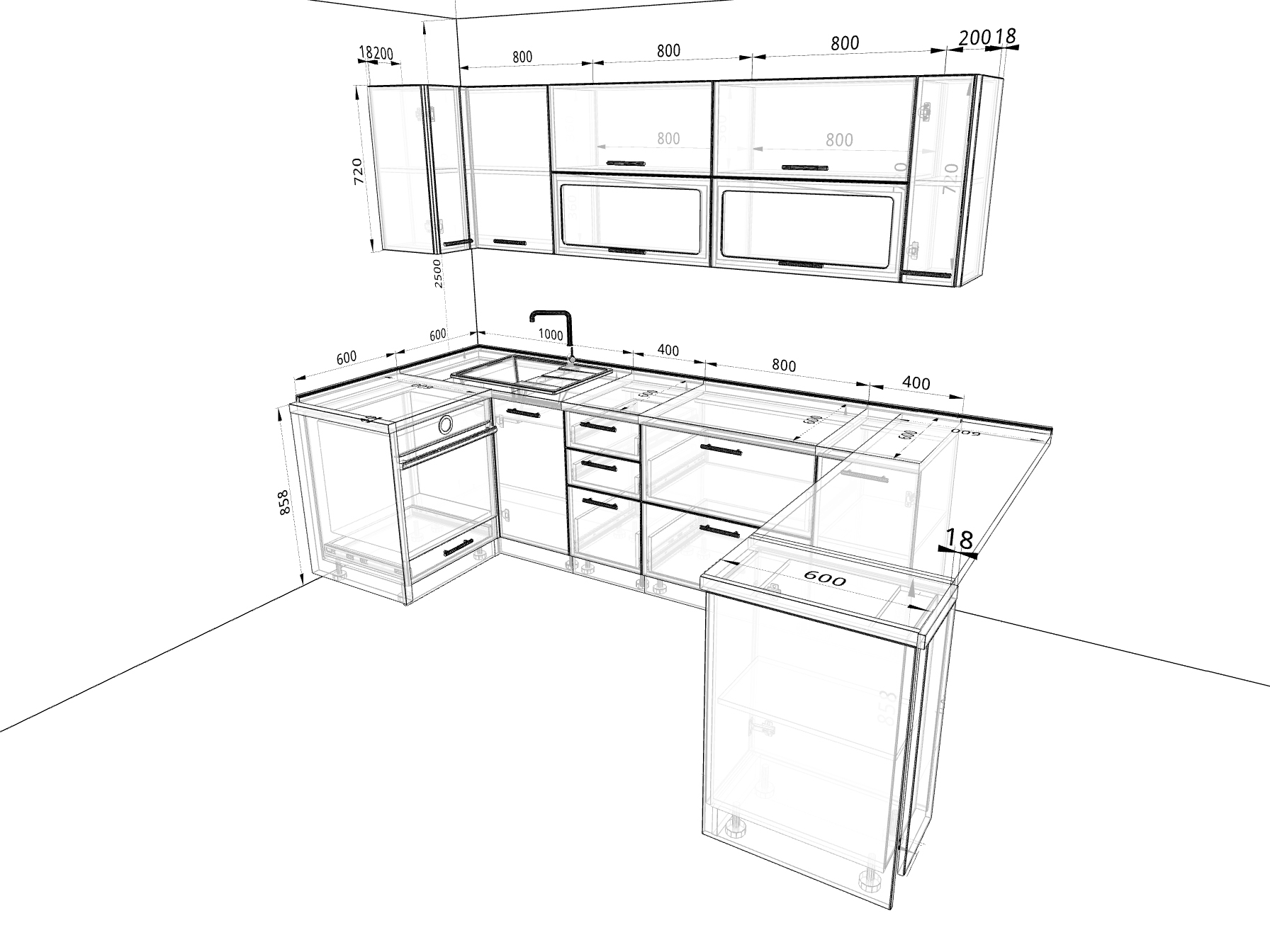 - шкаф навесной угловой, 800 мм;