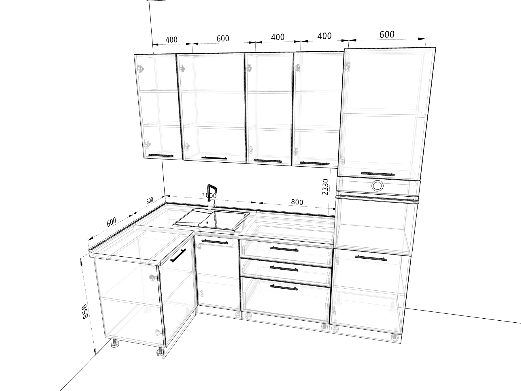 - пенал под духовку высокий, 600 мм;
