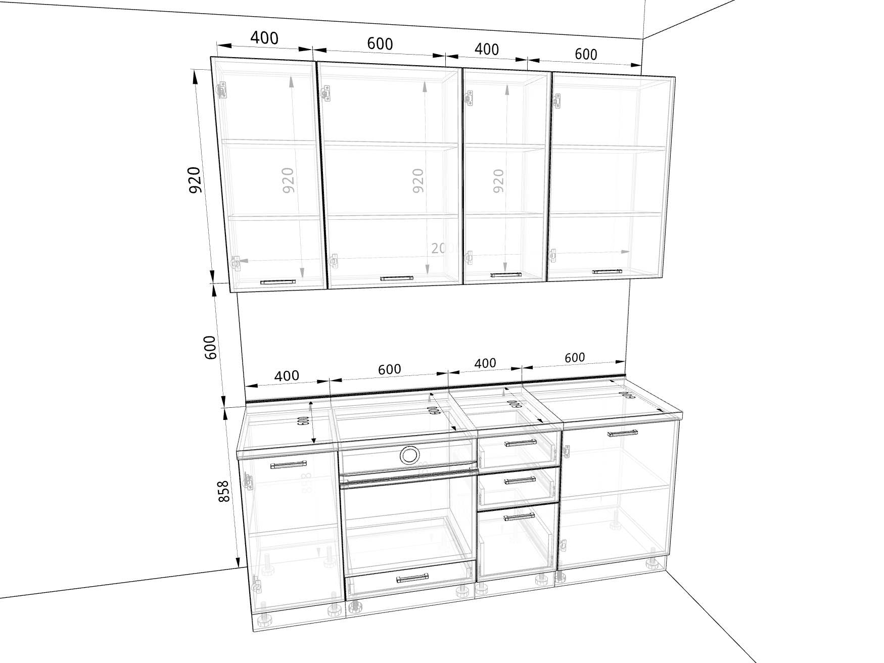 - колонна под духовой шкаф, 600 мм;