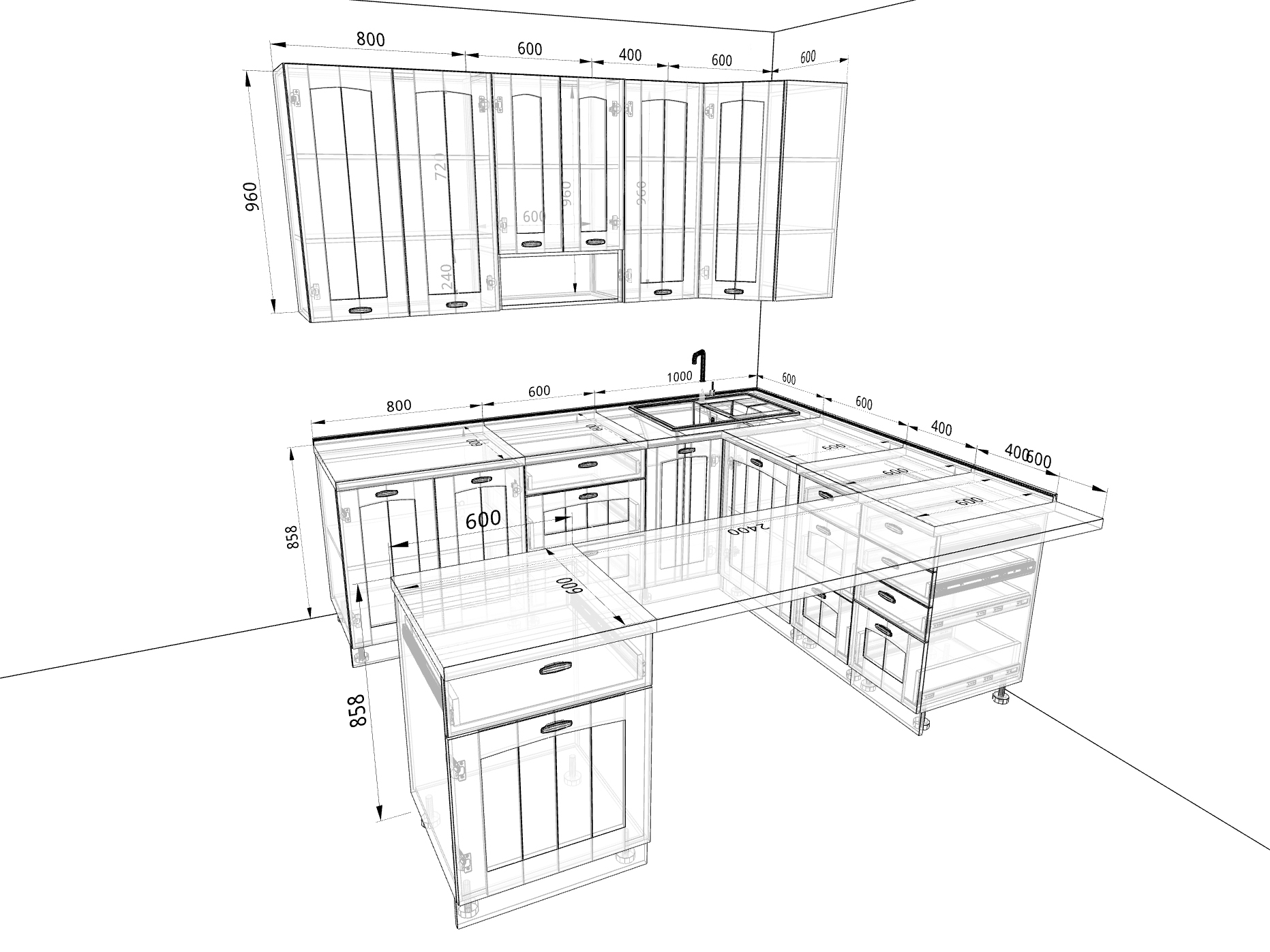 - шкаф угловой высокий, 600 мм;