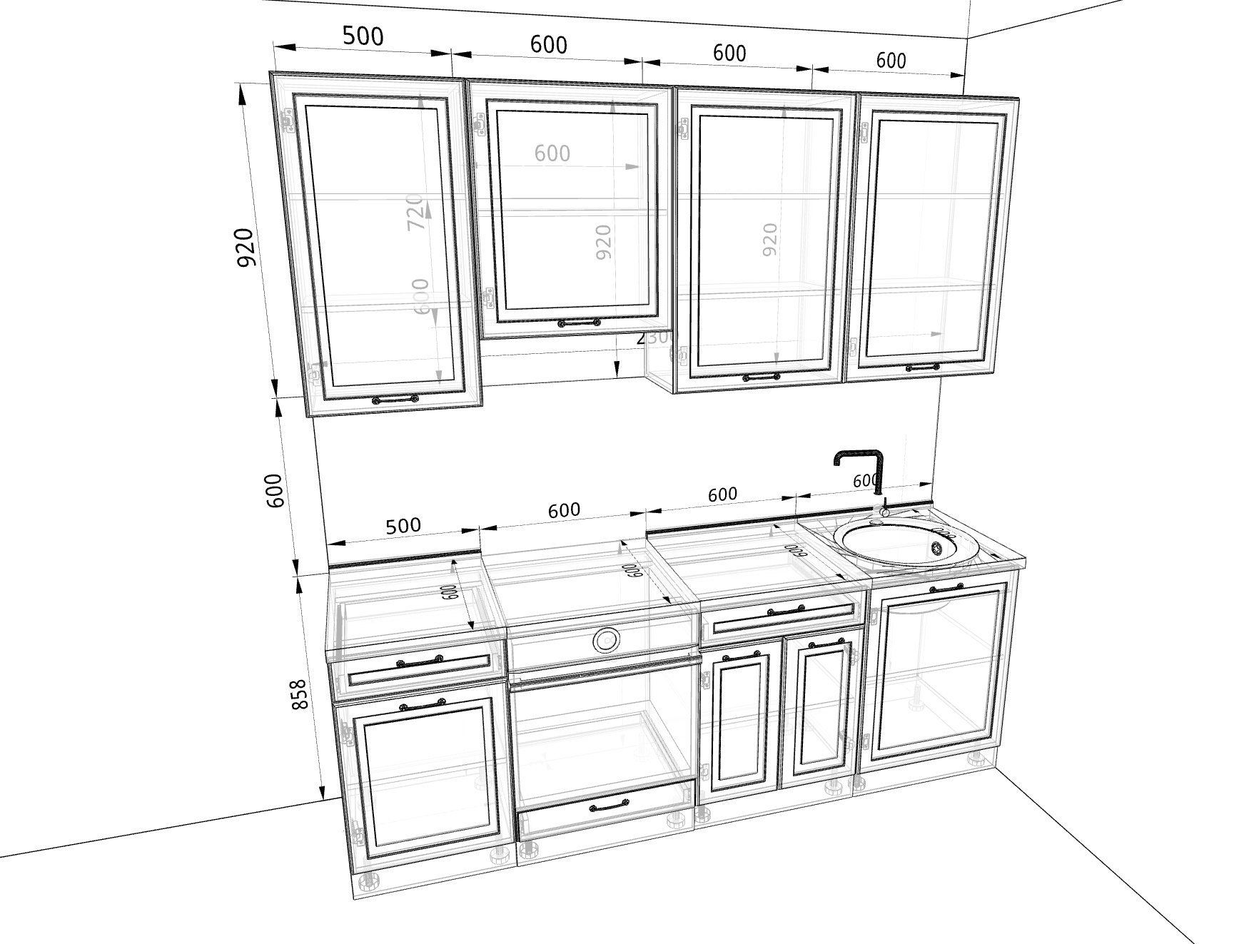 - колонна под духовой шкаф, 600 мм;