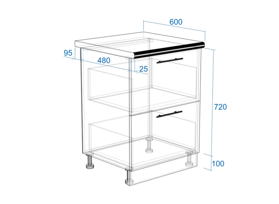 Ширина рабочих столов указана по столешнице, фактические размеры предметов изготавливаются меньше для сантехнических нужд. Смотреть схематические изображения ниже.