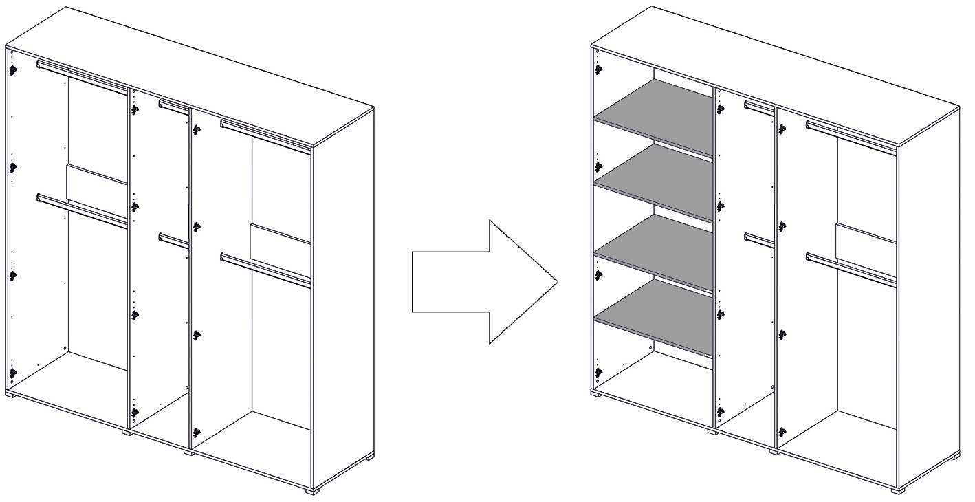Комплектом полок из 4 штук к Шкафу 5х створчатый (Ширина: 2250)