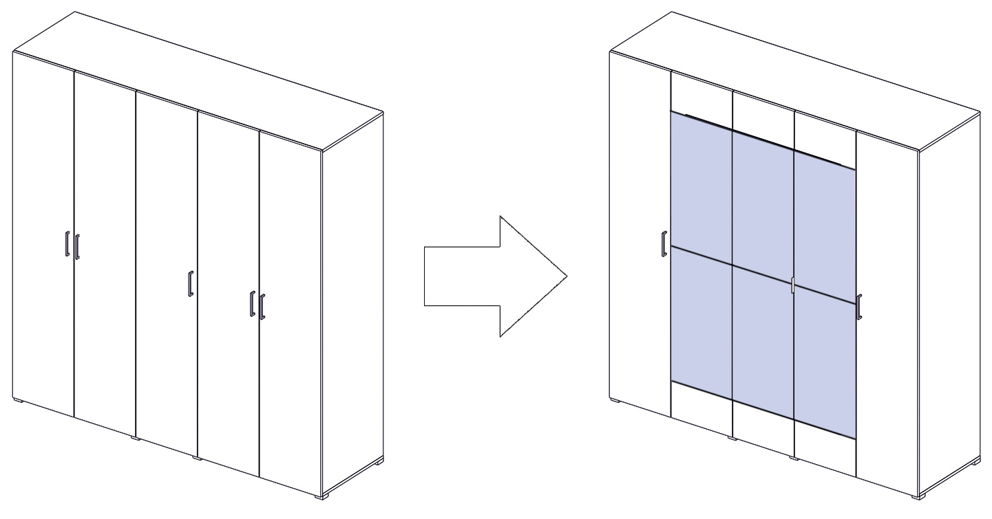 Зеркалом на фасад (1 зеркало - 400 мм) - ширина 1 фасада 400 мм