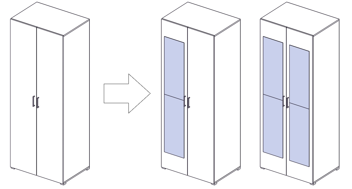 Внимание!!! Если зеркало во всю ширину фасада, то оно закрывает собой место под крепление ручки и исключает возможность прикрепить ручку к дверце.