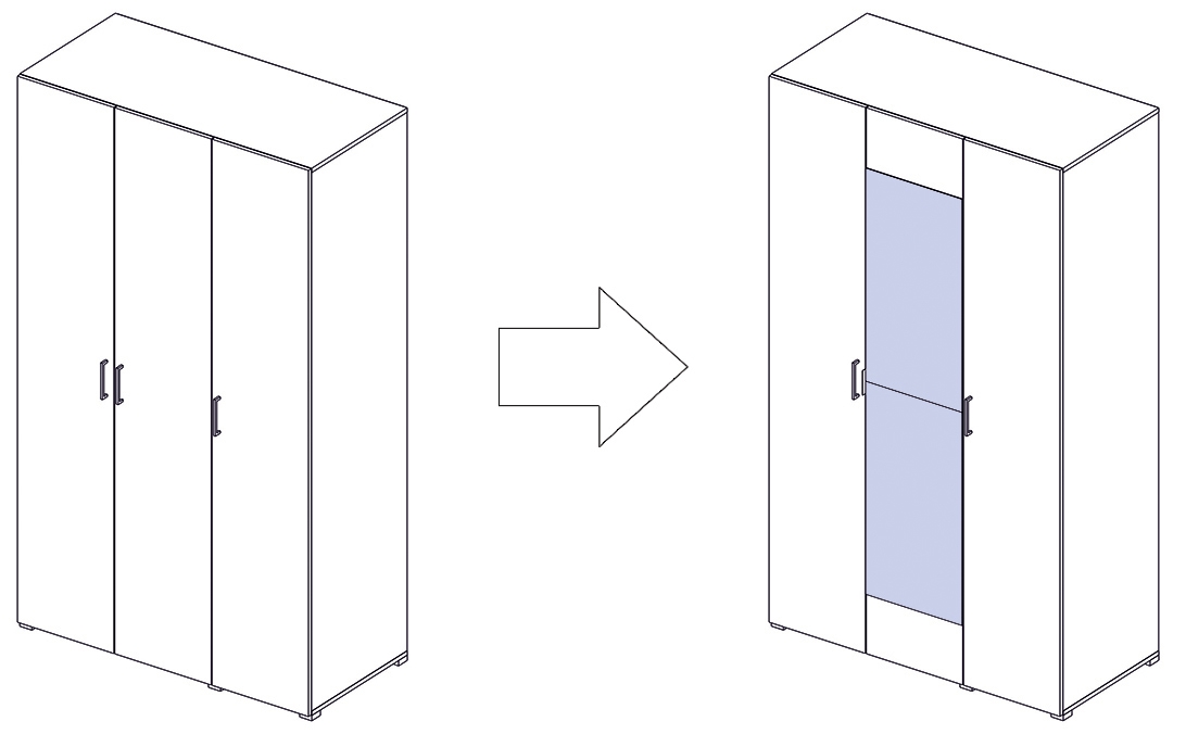 Внимание!!! Если зеркало во всю ширину фасада, то оно закрывает собой место под крепление ручки и исключает возможность прикрепить ручку к дверце.