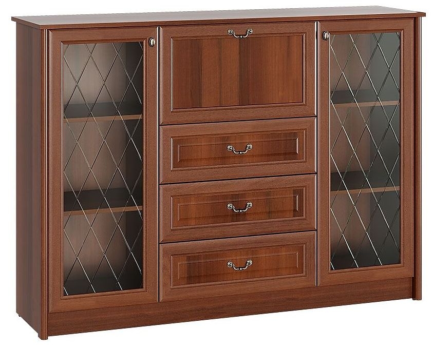 Модульная стенка «Янна» - это воплощение безупречной классики. В этой модели всё подчинено строгой геометрии. Фасады из рамочного профиля цвета «Орех Пегас» «»в сочетании с витражными вставками из стекла придают стенке солидность и элегантность. По вместительности шкафчиков и обилию выдвижных ящиков модель «Янна» не имеет себе равных, а открытая угловая полка подчёркивает современность дизайна стенки. Солидность, практичность и качество – главные достоинства модульной программы «Янна».