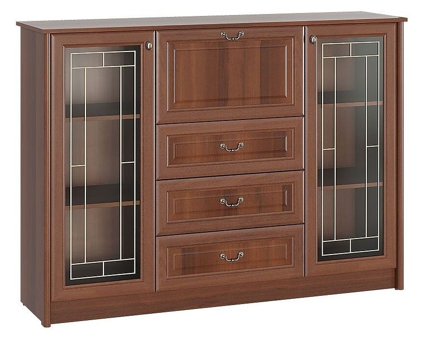Модульная стенка «Янна» - это воплощение безупречной классики. В этой модели всё подчинено строгой геометрии. Фасады из рамочного профиля цвета «Орех Пегас» «»в сочетании с витражными вставками из стекла придают стенке солидность и элегантность. По вместительности шкафчиков и обилию выдвижных ящиков модель «Янна» не имеет себе равных, а открытая угловая полка подчёркивает современность дизайна стенки. Солидность, практичность и качество – главные достоинства модульной программы «Янна».